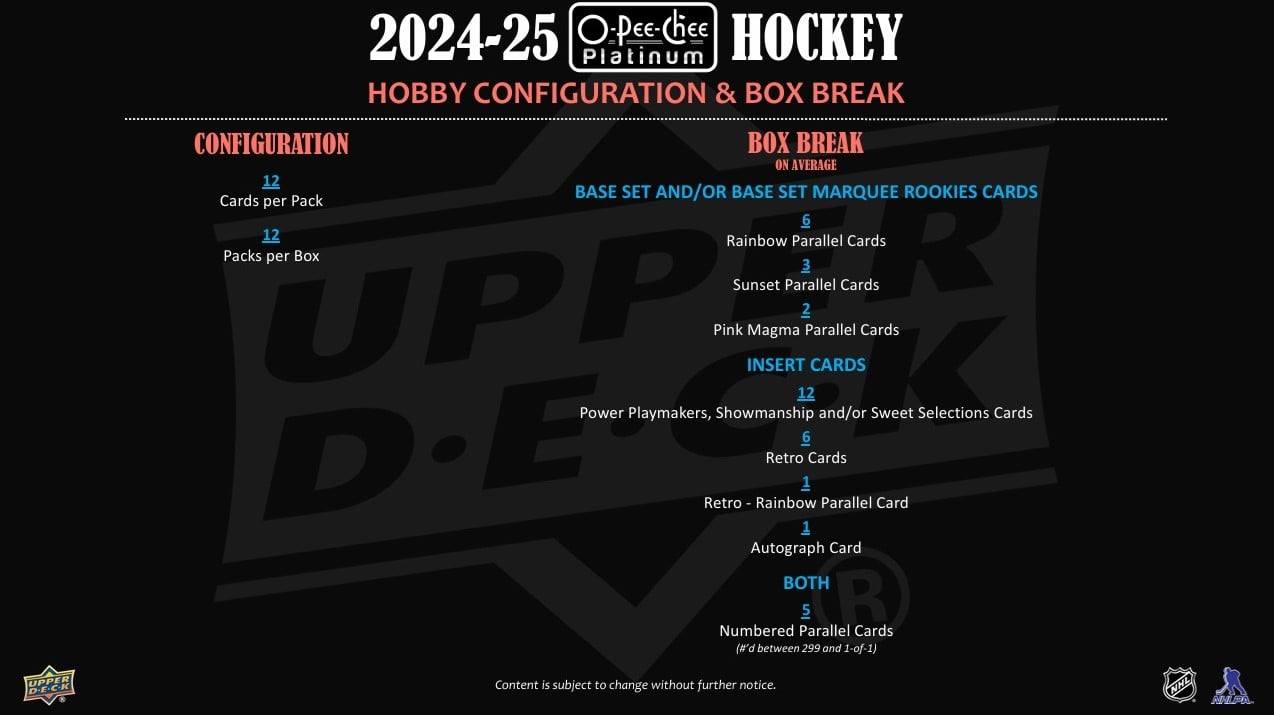 2024-25 Upper Deck O-Pee-Chee Platinum Hockey Hobby Balíček
