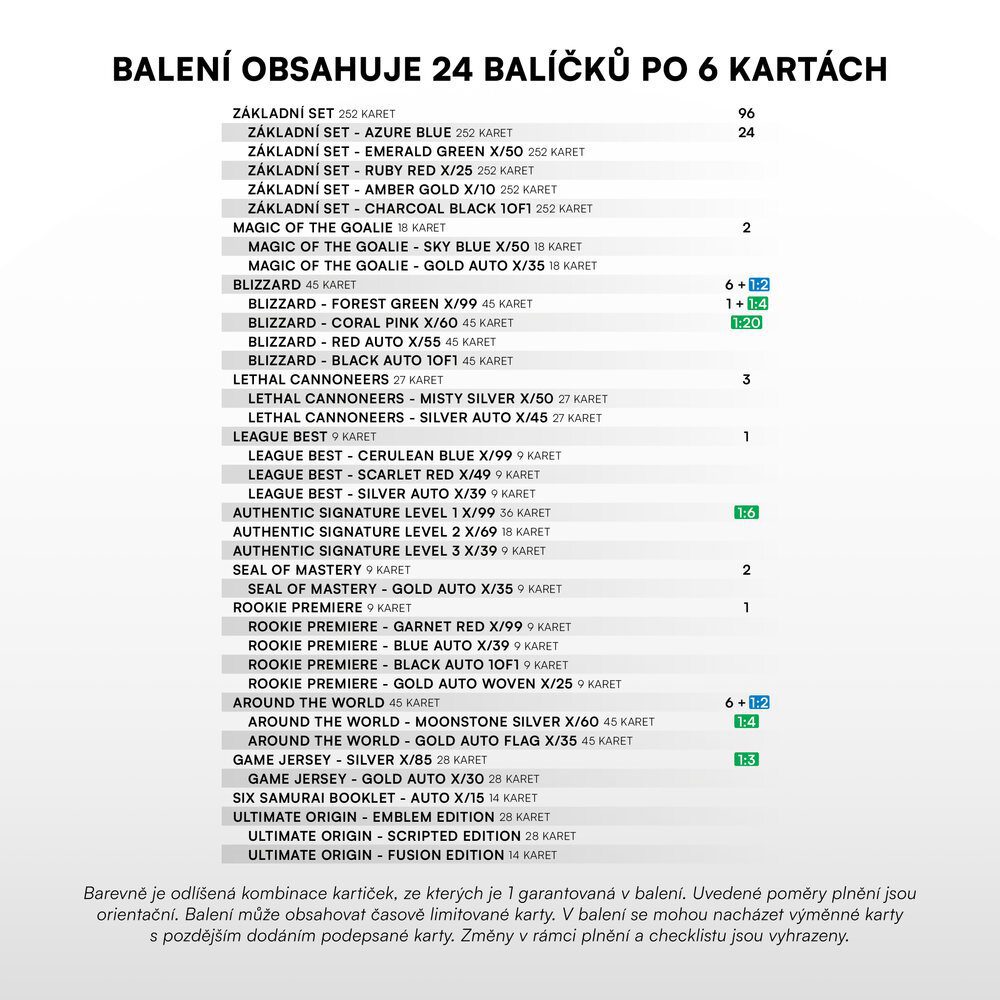 Poměr vložení karet do balení je podmíněn garancí obsahu v Retail boxu, který najdete v přiloženém obrázku v náhledu produktu.