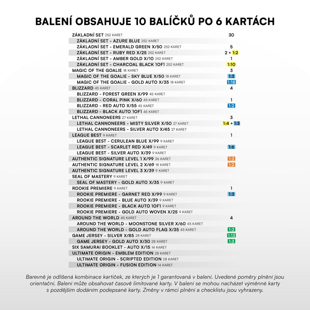 Poměr vložení karet do balení je podmíněn garancí obsahu v Hobby boxu, který najdete v přiloženém obrázku v náhledu produktu.